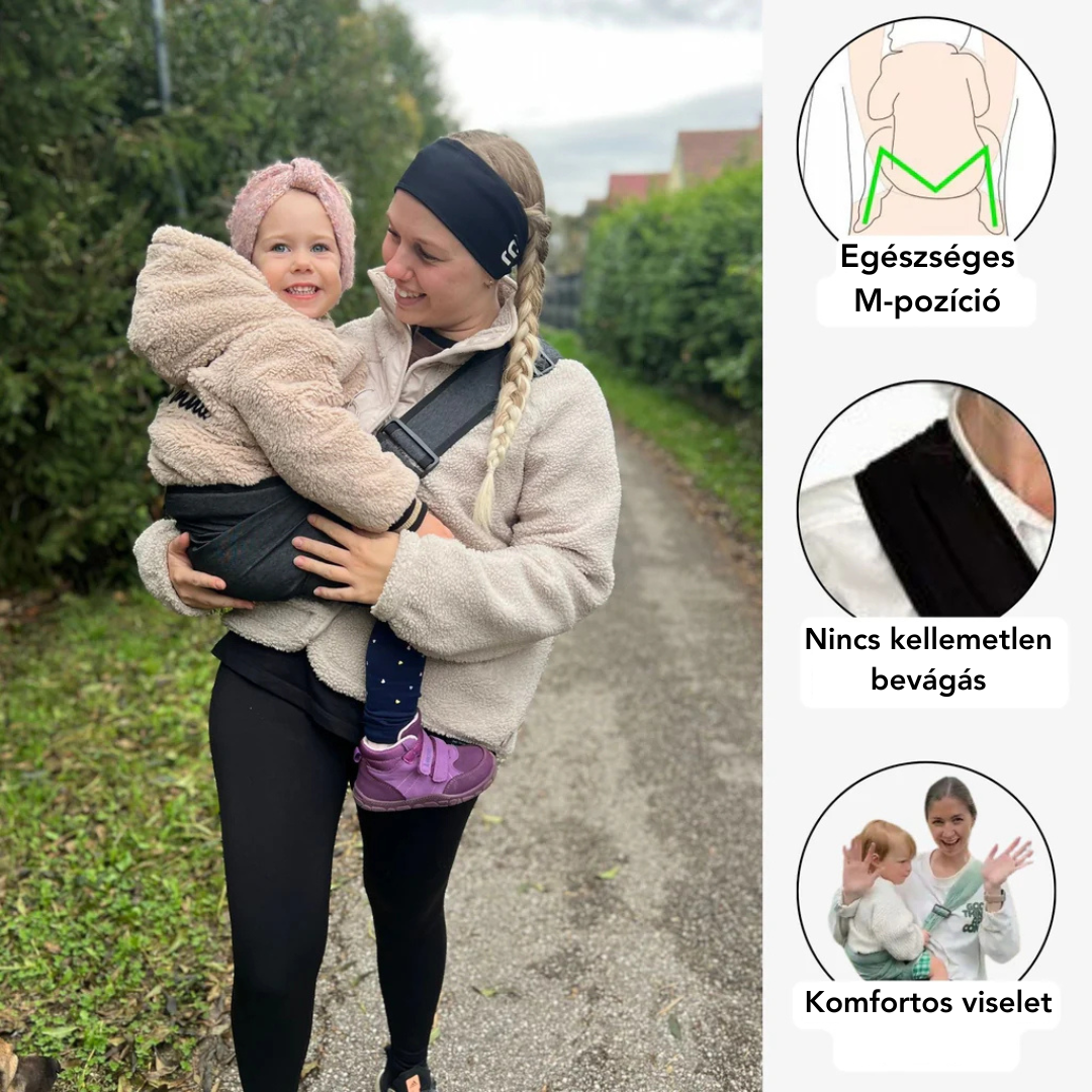 Könnyedén igazítható mind a baba, mind a szülő testalkatához – egyetlen mozdulattal beállítható, így kényelmes marad akár több viselő számára is.